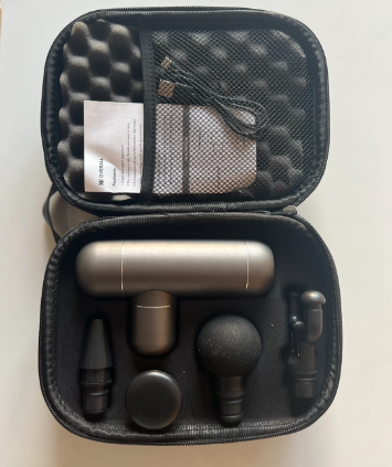 Denne avanserte massasjepistolen kommer med 4 massasjestykker, som muliggjør dypvevsmassasje og mye mer. Den selges komplett i en kompakt